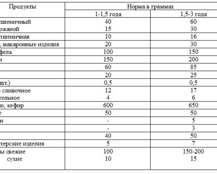 - Да, такой набор есть. Вот примерный набор продуктов на один день для ребенка в возрасте одного-трех лет.