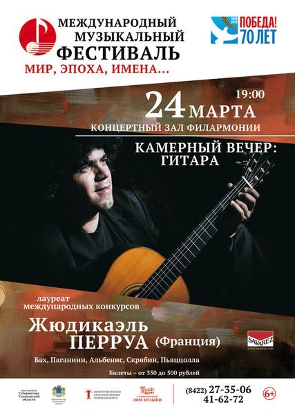 24 марта. Камерный вечер: гитара. Лауреат международных конкурсов Жюдикаэль Перруа (Франция) 6+