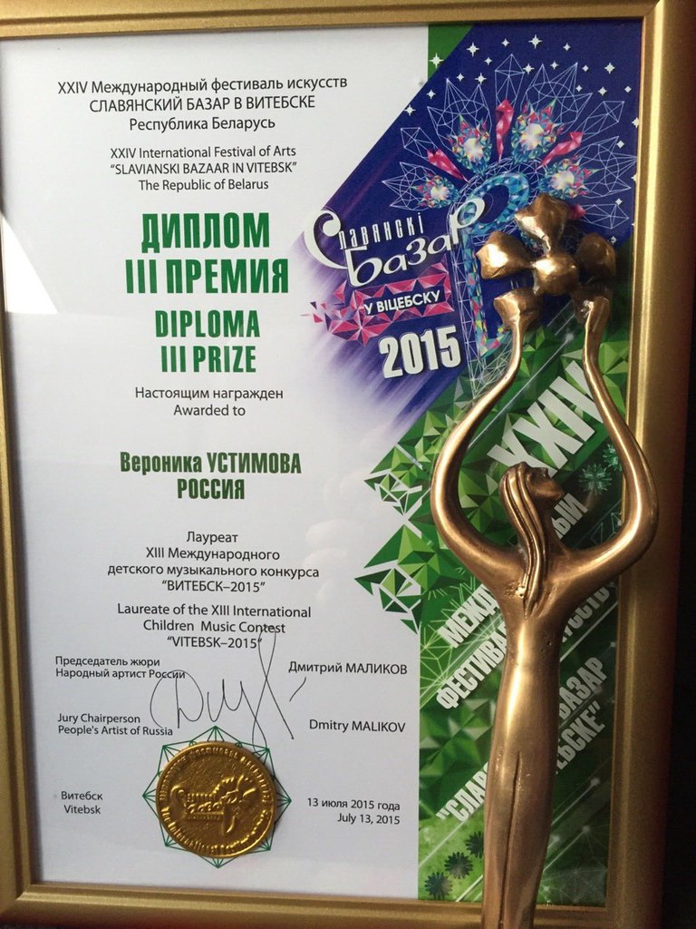 С 9 по 13 июля проходил XIII Международный детский музыкальный конкурс «Витебск-2015». Россию на нем представляли две молодые звездочки — Вероника Устимова из Ульяновска и Софья Лопухова из Рязани.