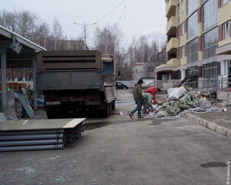 «Галактика» готовится к приемке, рабочие убирают остатки строительного мусора.