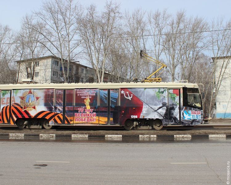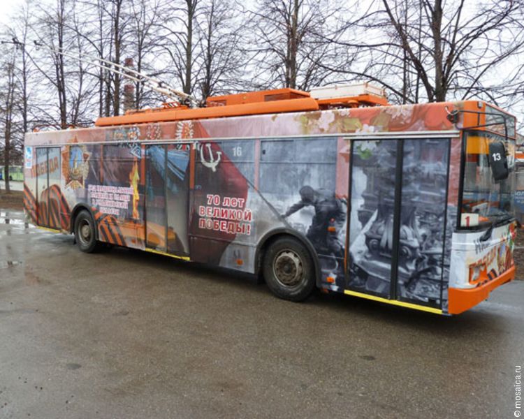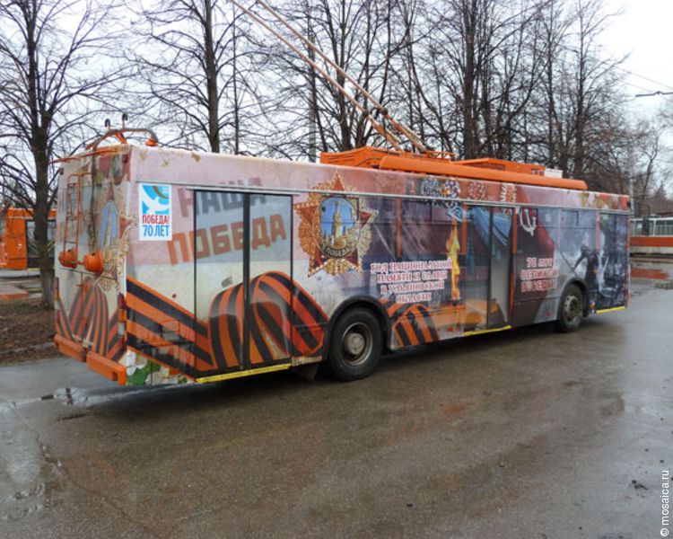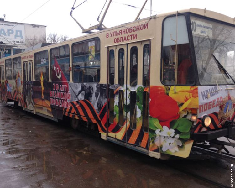 Полным ходом идет подготовка к 70-летию Победы. В ее рамках сотрудники «Ульяновскэлектротранса» разместили на 100 трамваях и 50 троллейбусах стикеры с символикой 70-летия Победы в Великой Отечественной войне. На линию вышли троллейбус маршрутов №№ 2, 12, трамваи №№ 2ю, 9, 10, полностью оформленные символикой предстоящего праздника.