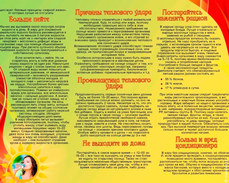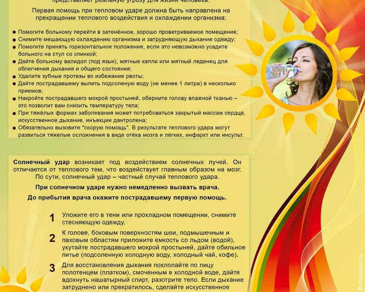 Ниже вы найдете несколько самых главных советов о том, как вести себя в жаркую погоду и как оказать первую помощь при тепловом ударе.
