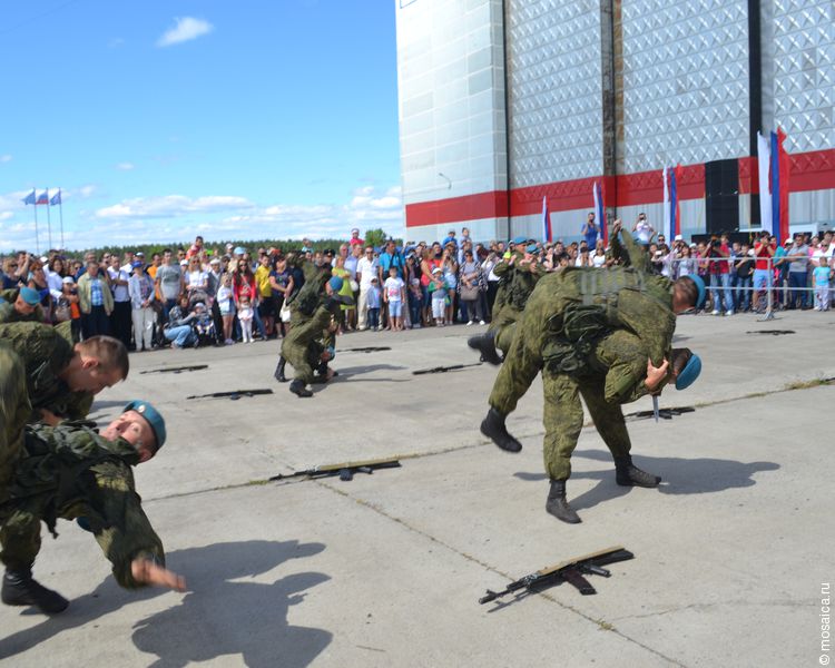 Кроме того, своё мастерство на авиасалоне показали ульяновские десантники. Стоявшие мальчишки удивлялись и говорили «Вау!». Конечно, ведь наши десантники намного круче любых солдат в их компьютерных играх.