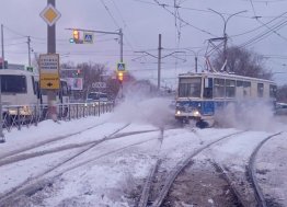 Он расчищает трамвайные пути