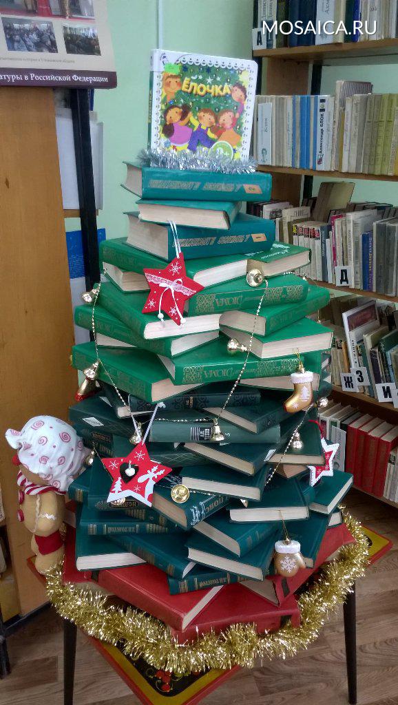 Так, в библиотеке №18 города Ульяновска появилась не совсем обычная елка — ее собрали из настоящих книг.