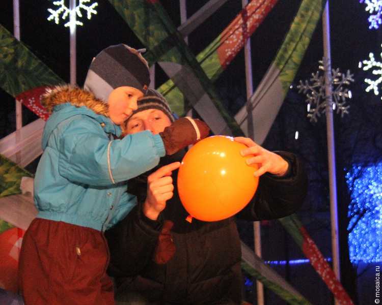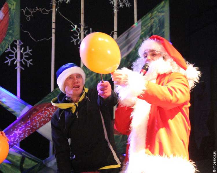 Третий же конкурс, пожалуй, можно назвать самым трогательным. Четыре пары отцов и детей рисовали на воздушных шарах очертания континентов. И хотя нарисовать все части света получилось не у каждой пары, но старания были видны у всех. В итоге Санта Клаус объявил боевую ничью и заявил, что «Танцуют все!»