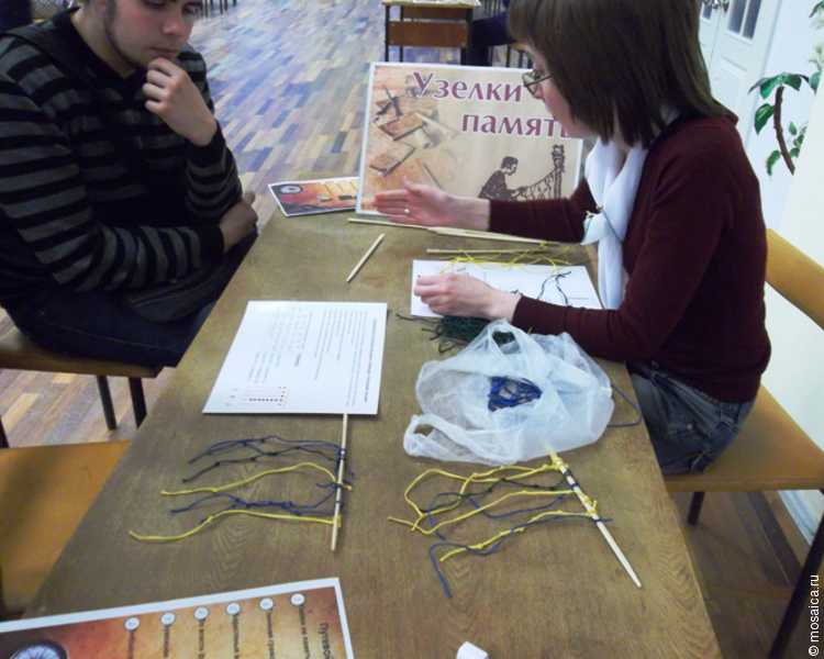 На квесте «Письмена в лабиринтах времени» учили древнему узелковому письму, можно было изготовить свою берестяную грамоту и стать писчим по глине.