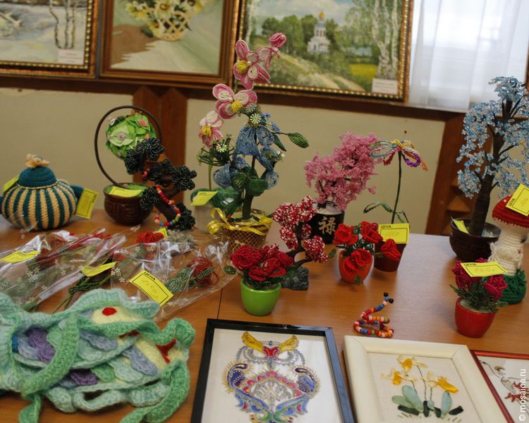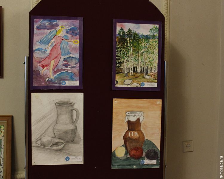 Непосредственно перед концертом «Мы не видим, но мы видны» в фойе Дома музыки развернулась выставка работ воспитанников школы-интерната №91. На ней представили написанные и вышитые картины, поделки из бисера, мягкие игрушки. Любой желающий мог приобрести работы и тем самым помочь ребятам.
