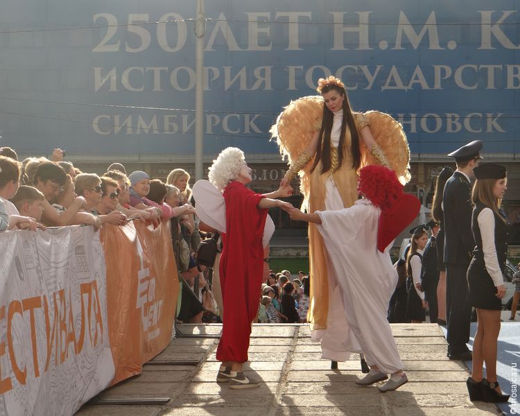 Посмотреть на артистов собрались сотни ульяновцев. До приезда артистов развлекали гостей мимы.