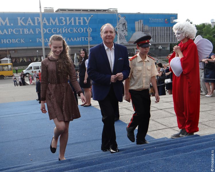 Первой на дорожке появилась актриса и президент фестиваля Вероника Лысакова, за ней следовали ульяновские знаменитости Алексей Крашенинников и Александр Лебедев. Прошли по дорожке актеры и режиссеры Вилорий Пащенко, Анастасия Лашкова, Елена Цыплакова и Павел Щербаков. Закрывали звездное шествие композитор Максим Дунаевский и великолепная Лидия Федосеева-Шукшина. Она по ковровой дорожке не пошла, а вышла как раз перед Анатолием Бакаевым.