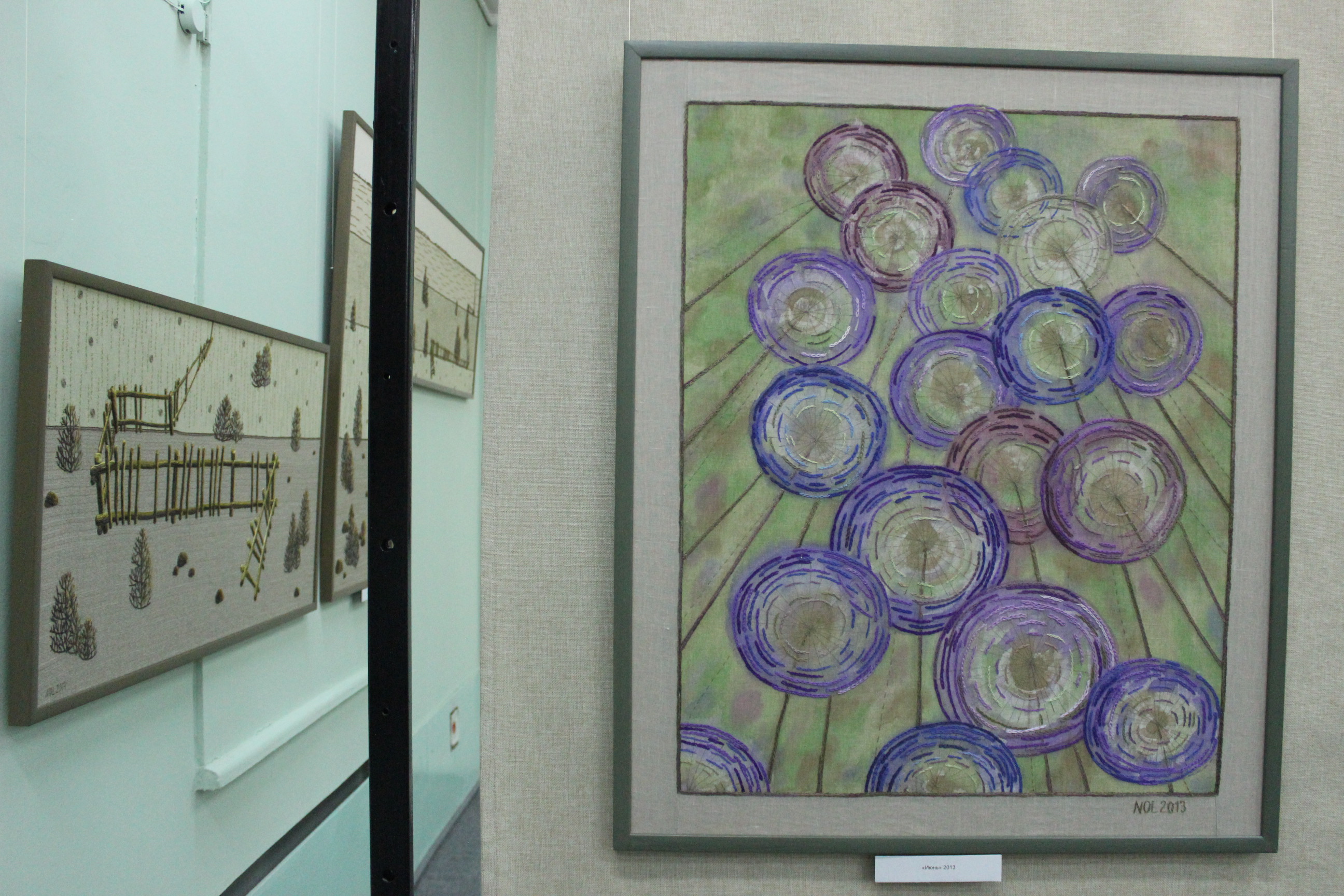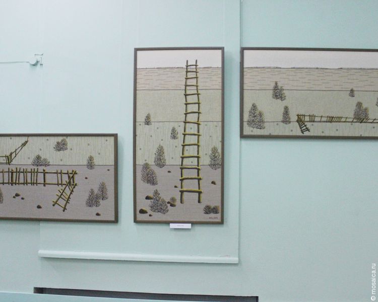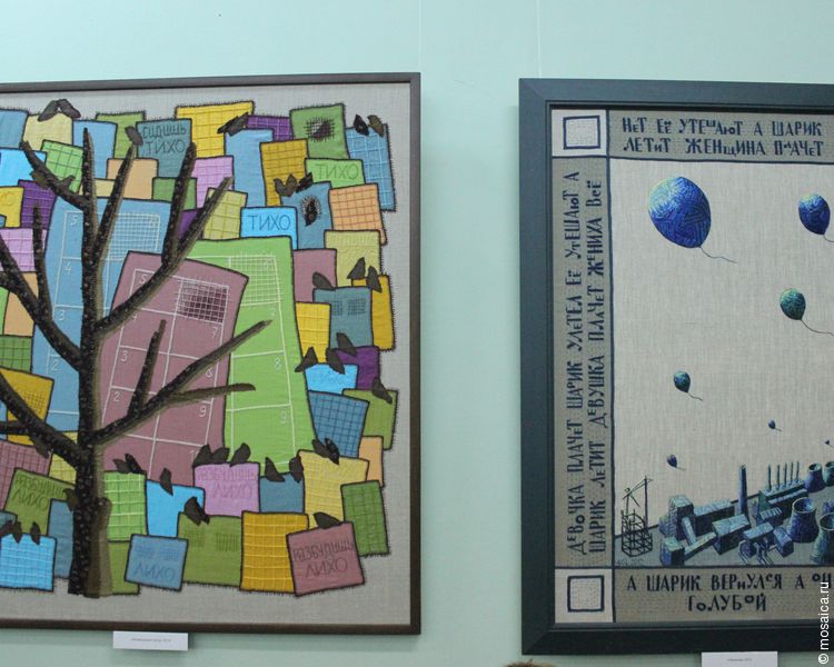 В экспозиции представлены порядка тридцати произведений, выполненных в разных стилях и техниках: вышивания, лоскутного шитья и рисунка. Самое необычное –применение всех этих техник в каждой работе одновременно.