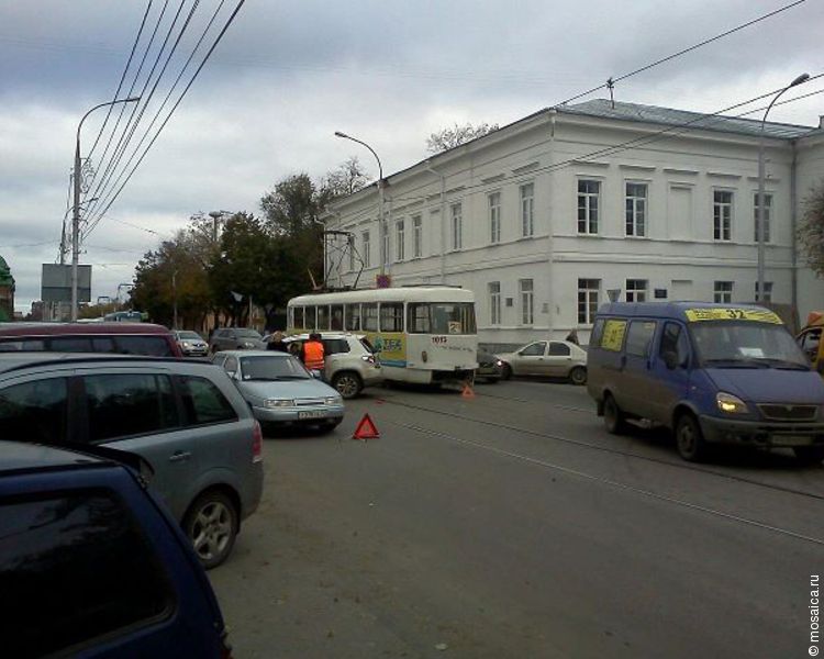 Напротив гимназии №1 столкнулись трамвай и иномарка.