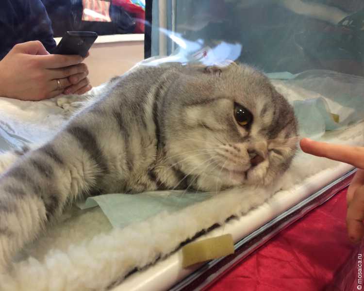 Гладить питомцев можно было лишь предварительно обработав руки. Выставка пользовалась бешеной популярностью, зрителей пришло немало, и некоторые кошки даже устали от такого обилия внимания.
