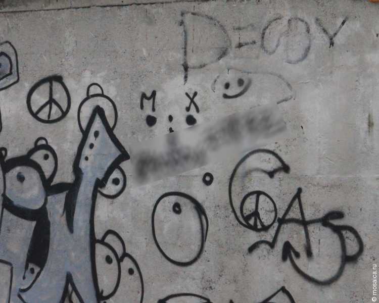 К сожалению, таких «рисунков» на стенах зданий, заборах, асфальте несчетное количество. Получасовая прогулка с камерой - и мы стали обладателями целой коллекции. Где-то огромные, во всю стену, цифры, где-то припрятаны в уголке, маскируясь под граффити.