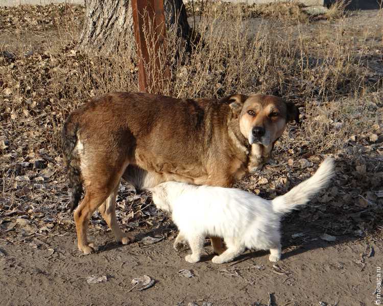 В редакцию сайта «Главные Новости Ульяновска» поступило сообщение о необычной парочке. Будто Шерочка с Машерочкой на улице Суворова в районе стройки гуляют дворняжка с белым котом. При этом выражение «как кошка с собакой», имеющее негативную окраску, явно не про них. Собака и кот явно дружат. Пока пес идет, белый «пушистик» к нему прижимается и ходит между лапок. Есть ли у парочки дом, или они уличные, так и осталось загадкой.