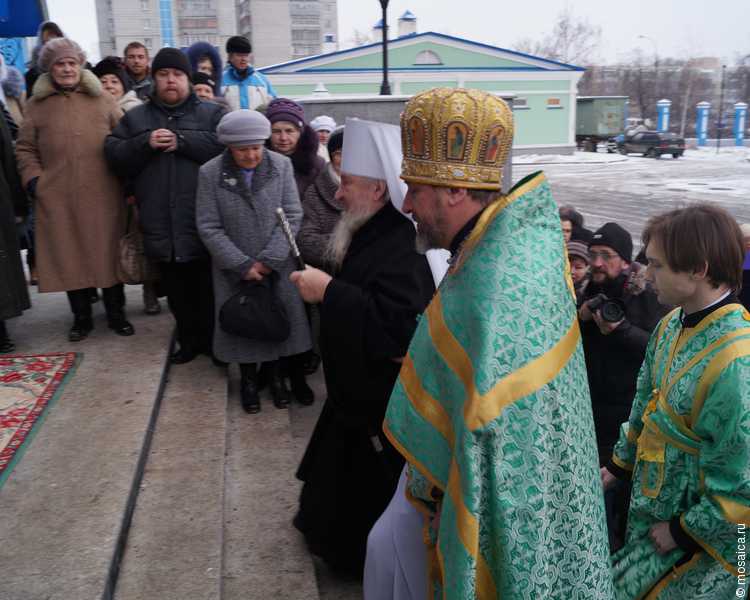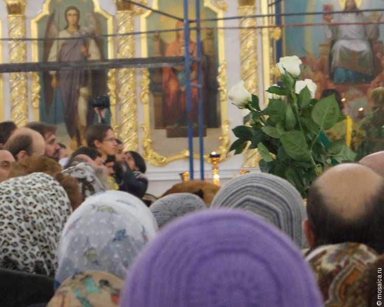Пришедшие на службу люди передавали свечи и цветы, подпевали церковному хору.