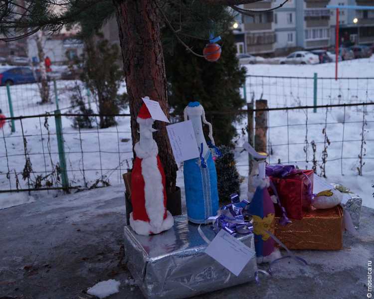 Елочка стала настоящей красавицей всего двора — столько красивых и интересных игрушек украсили ее. Само собой, детишкам помогали их родители, но результаты совместного творчества поражают.