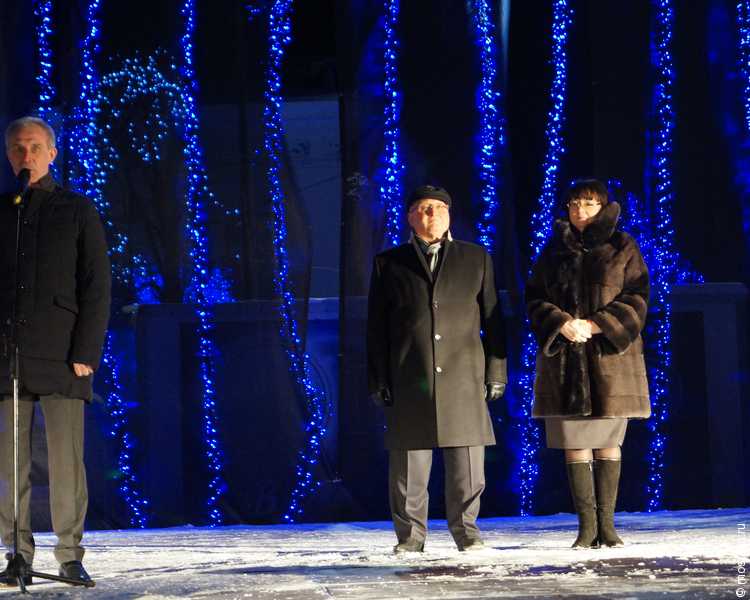После поздравления губернатора елка загорелась праздничными огнями.