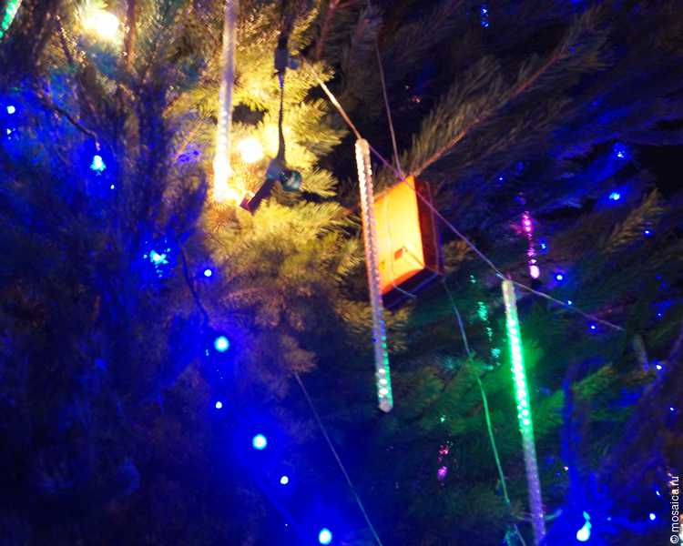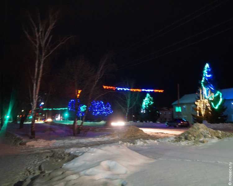Самой украшенной, и можно сказать, что единственной украшенной улицей, стала центральная – именно она сверкает разноцветными световыми гирляндами, а деревья по обеим сторонам дороги переливаются почти всеми цветами радуги. В некоторых местах, в основном у магазинчиков, красуются украшенные зеленые красавицы.