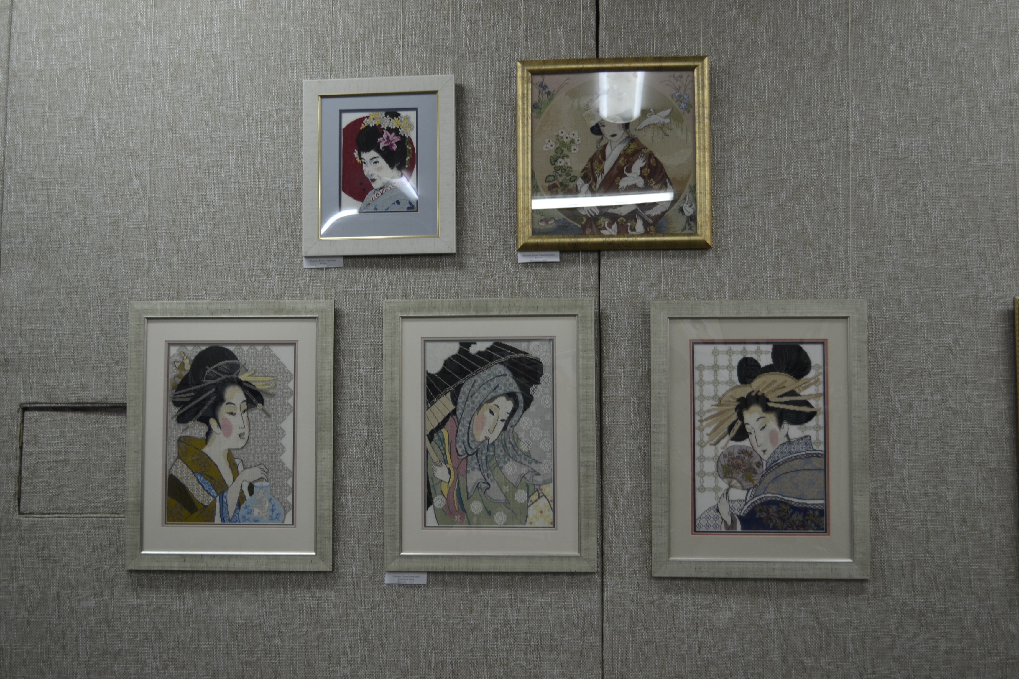 Ретропортрет - самый многочисленный. Также на выставке были представлены работы по разделам: современная женщина и иностранная женщина. Особой популярностью среди вышивальщиц пользуются китаянки и японки. Еще один раздел, вызывающий добрые и милые эмоции, посвящен теме «Мать и дитя». Раздел представлен в центре экспозиции и приурочен к Татьяниному дню.