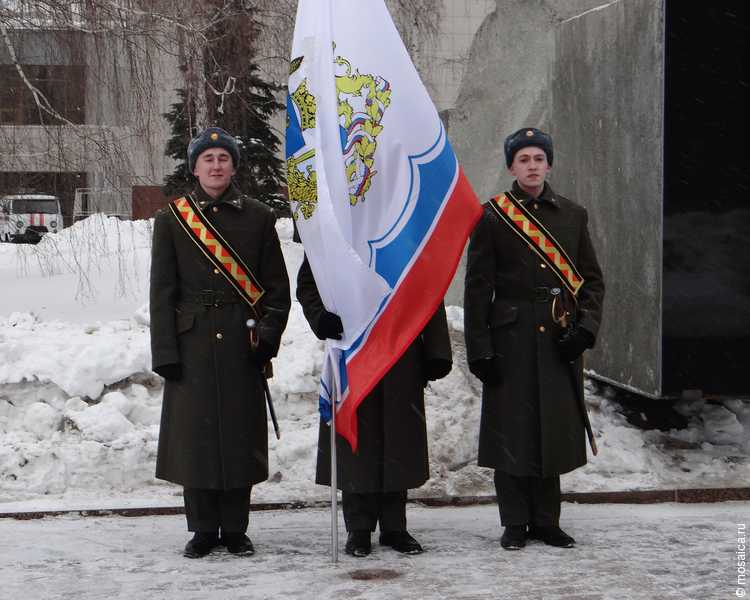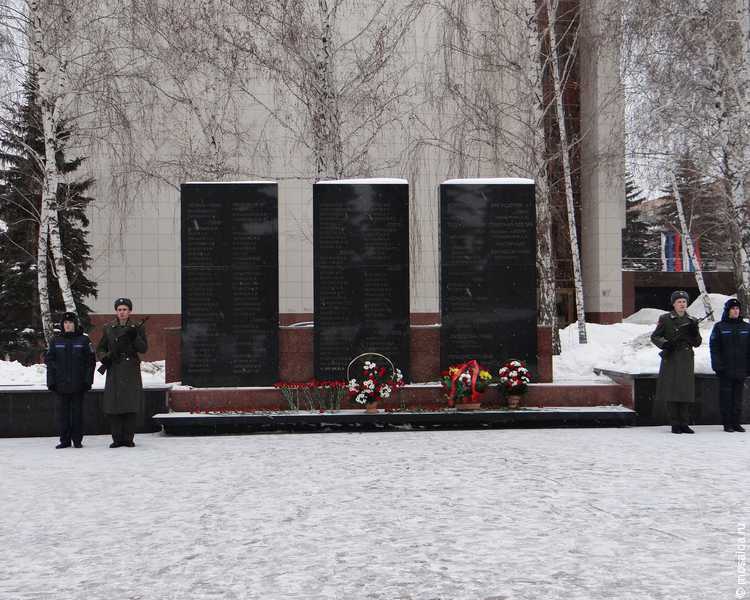 Серость февральского снега, ветер, моросящий снег... На площади 30-летия Победы прошел воинский ритуал, возложение венков и корзин с цветами к памятникам воинам, погибшим в Афганистане, на Северном Кавказе и к монументу «Вечный огонь». В память о погибших был дан троекратный залп.