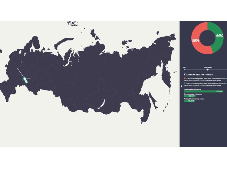 Интерактивная карта дает возможность увидеть, откуда больше всего приехало новых жителей в регион и куда наши земляки предпочитают уезжать. Подготовлена она на основе переписи 2010 года. Как утверждают составители, исследование охватило около 125,4 миллиона человек – то есть всех, кто родился в России и ответил на вопрос о месте своего рождения.