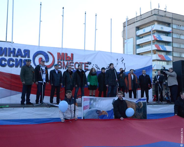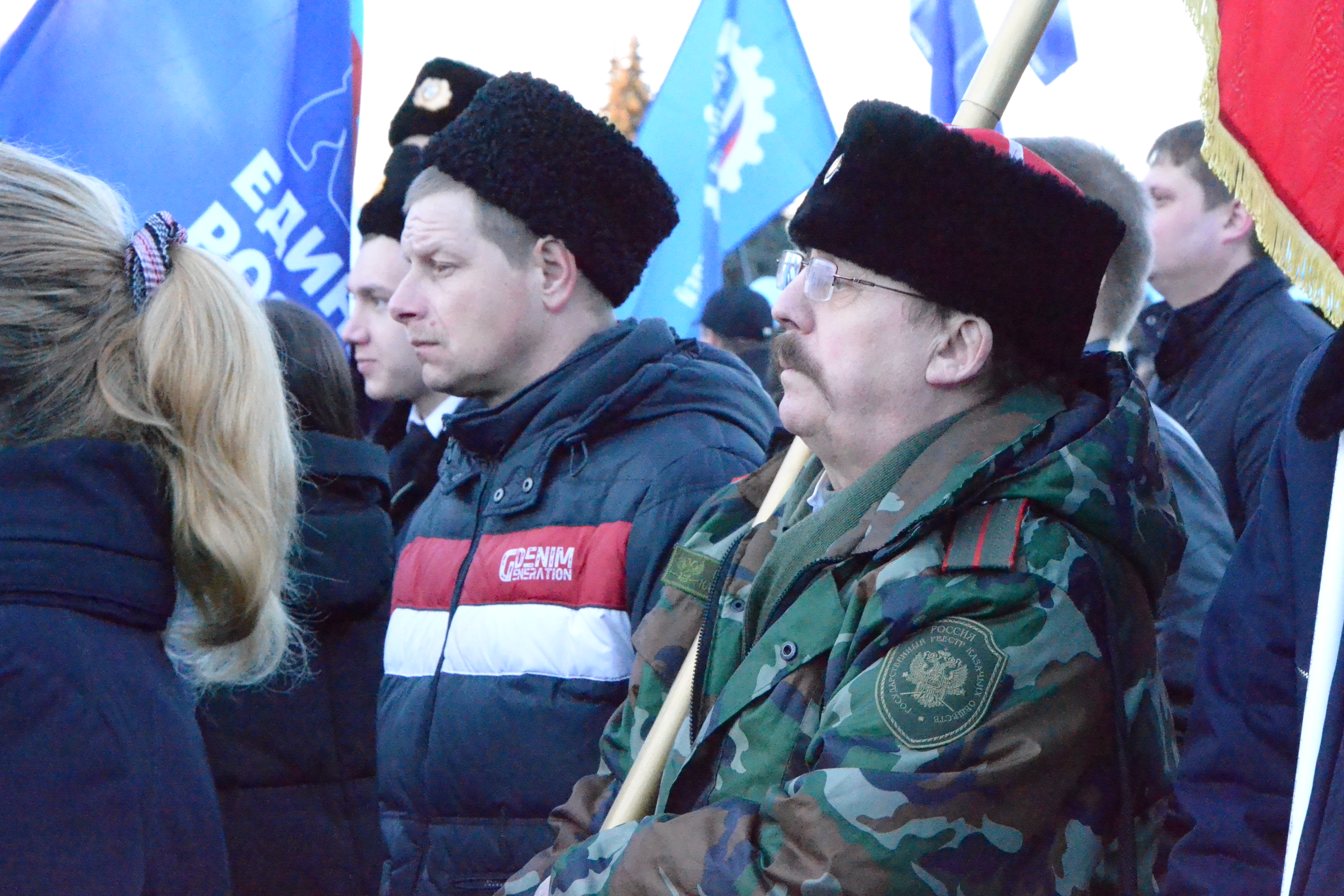 Конечно, заявленных ранее пяти тысяч человек не набралось, но людей пришло много, несмотря на будний день. Началось все действо с исполнения Гимна РФ, продолжилось выступлениями лидеров различных патриотических движений и музыкальных коллективов. Слово сказал и декан исторического факультета УлГПУ Иван Альбертович Чуканов, уроженец Крыма.