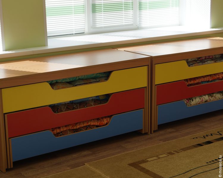 В группе для аллергиков нет ковров и занавесок, зато здесь красивые жалюзи на окнах и теплые полы.