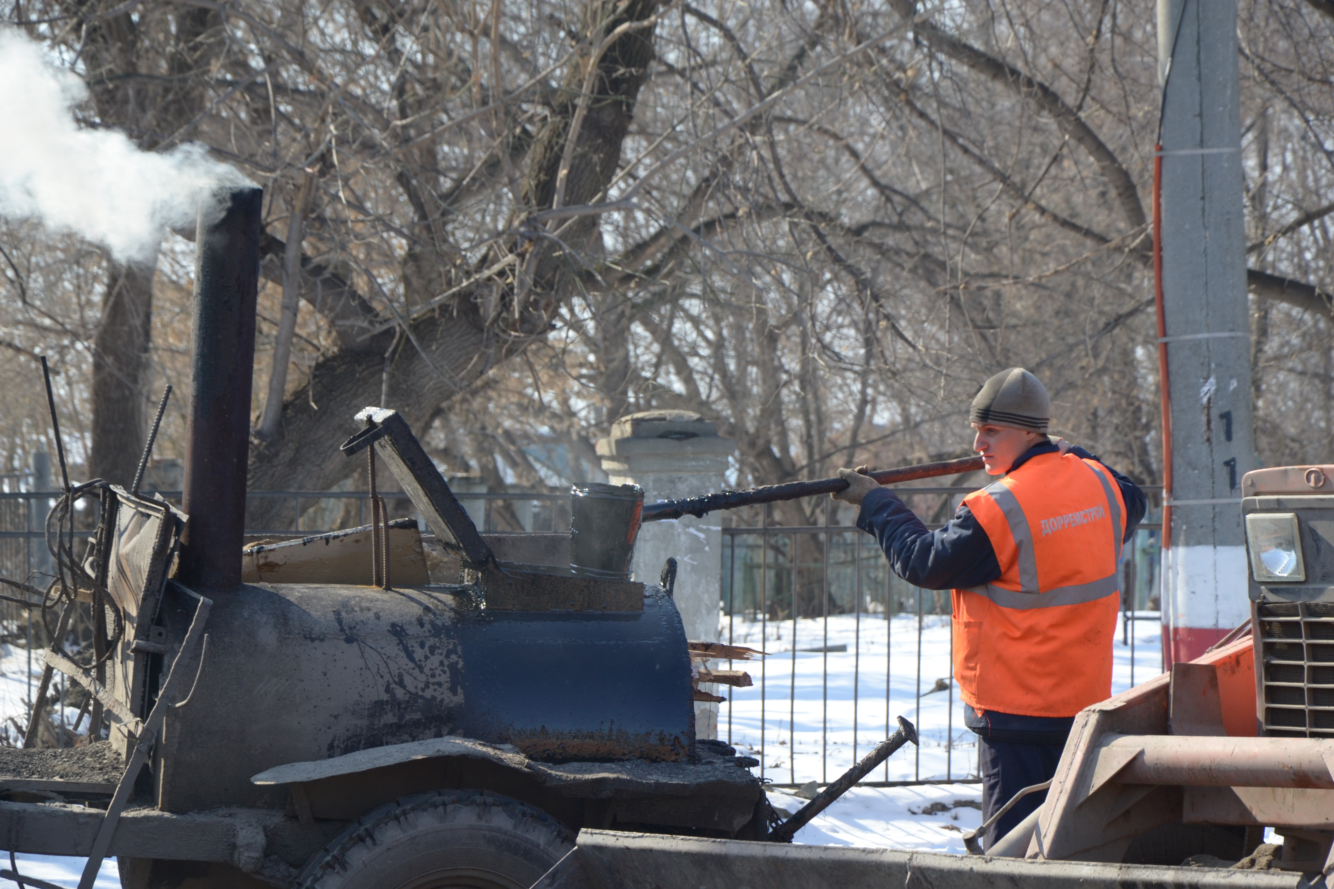 Сейчас одна из бригад занимается дорогой на Карла Маркса, так что автомобилистам стоит быть внимательнее. Дорога не перекрыта, но движение затруднено.