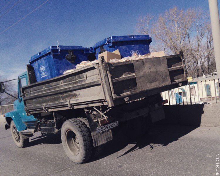В Ульяновске булки и буханки возят вместе с мусорными контейнерами.