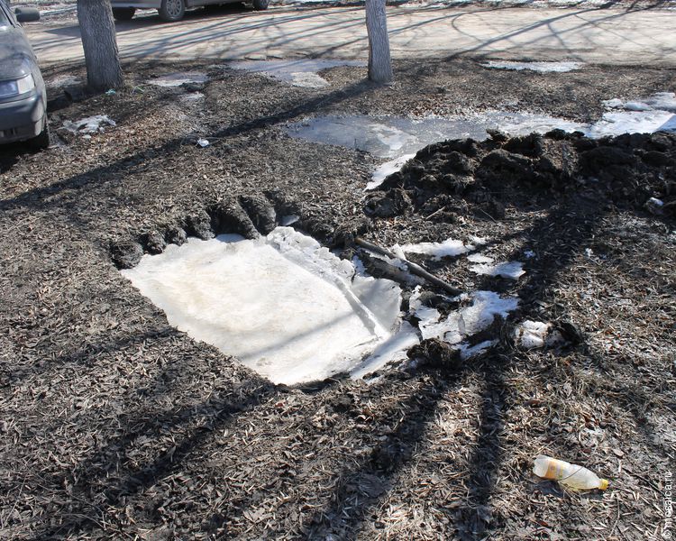 А пока участок стоит в полном беспорядке, кое-кто начинает пользоваться им вместо парковки.  Более того, кто-то из автовладельцев догадался прикрепить фонарь на дереве.