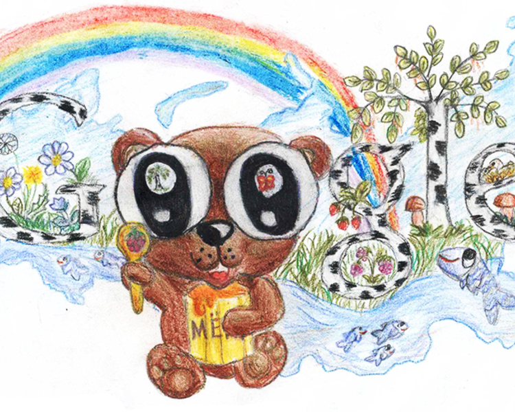 - Я мечтаю стать мультипликатором. Поэтому мой рисунок мультипликационный. Я изобразила медвежонка в березовом лесу. Мой мишка, хоть и не совсем обычный, малину любит он и мёд. Природу любит всей России, и потому он тут живёт! – рассказала Маша в письме организаторам.