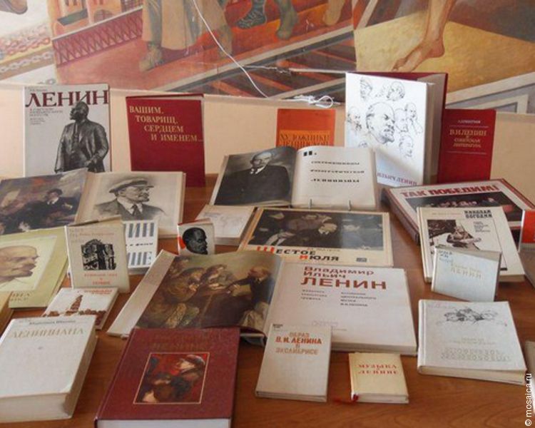 В Дворце книги организовали небольшую выставку с бюстами и книгами о Ленине.