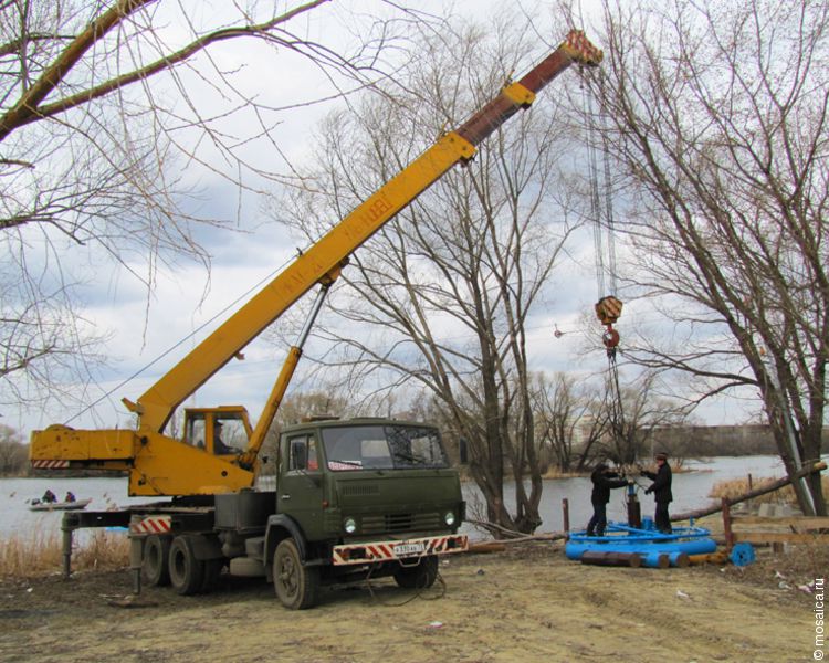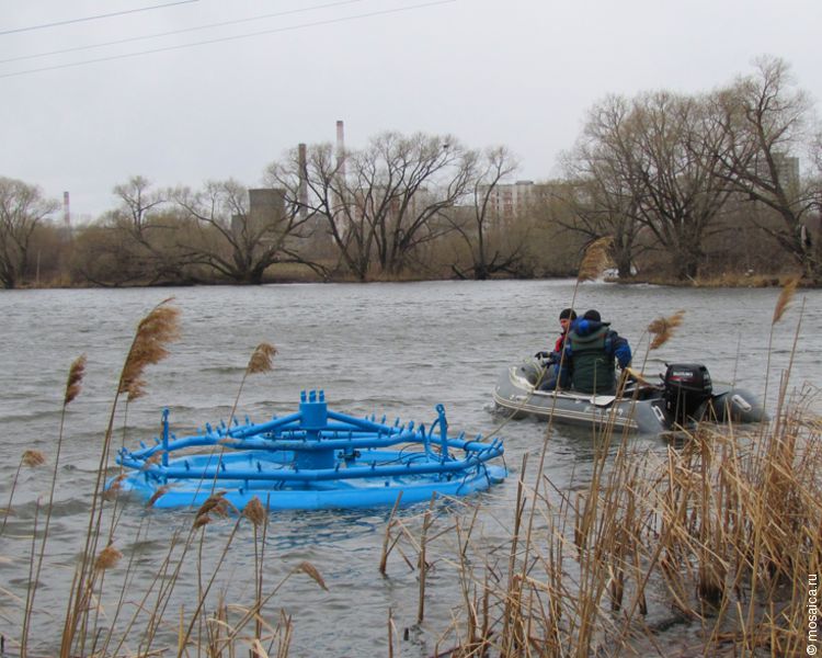 Затем лодка разворачивается, включает задний ход и начинает буксировку агрегата. Лодка движется медленно и осторожно. Во-первых, как только начинаются работы, появляется сильный ветер. Во-вторых, если лодка будет двигаться обычным способом, буксировочный канат может намотаться на лопасти мотора. Так что лучше не торопиться.