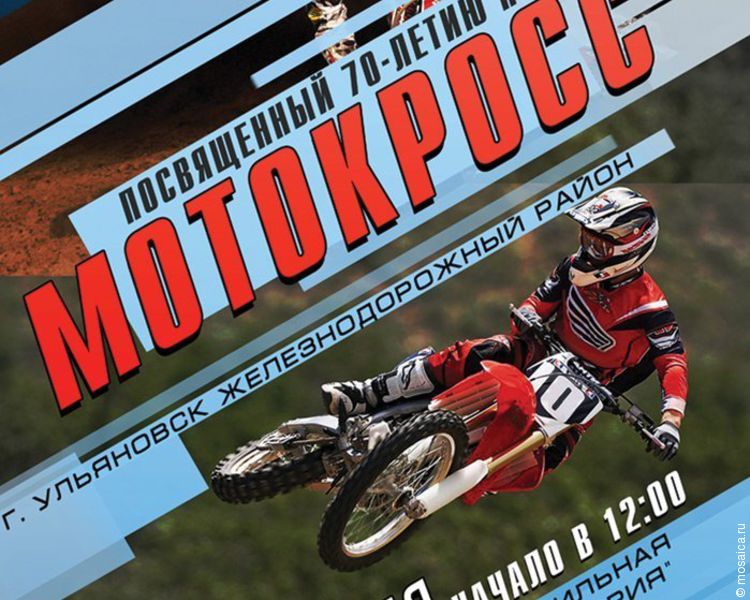 В эти выходные в Ульяновске пройдет чемпионат по мотокроссу, приуроченный к 70-летию Победы. Соревнования состоятся 25 апреля в 12.00 на плоскостной трассе «Виктория» вблизи поселка Борьба в Железнодорожном районе города. Это своеобразное кольцо протяженностью около 2 километров, притом на пути там встречаются подъемы, спуски, повороты и искусственные препятствия.