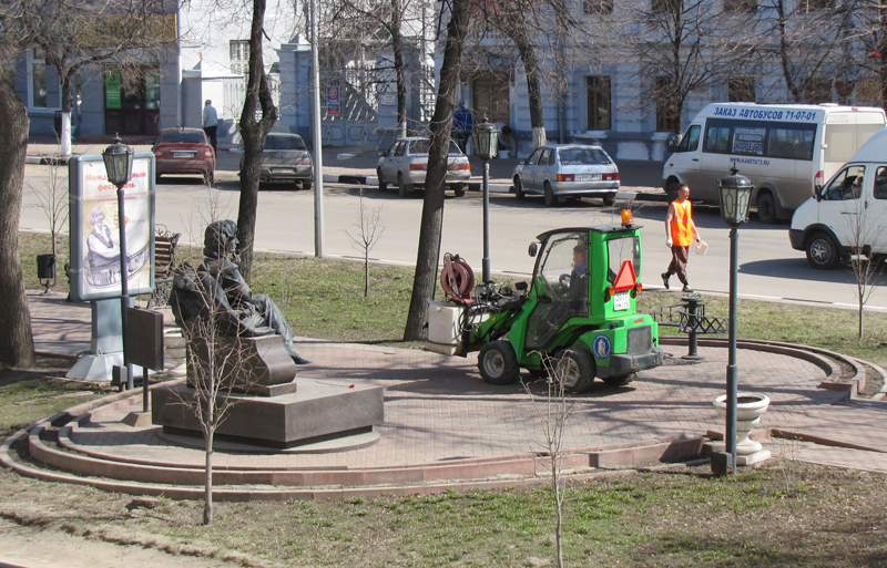 Завтра праздник, по главной улице Ульяновска пройдёт демонстрация. А сегодня город приводят в порядок: красят бордюры, подметают и моют дороги, латают дырки. Делают это всем миром – каждый на своём участке.