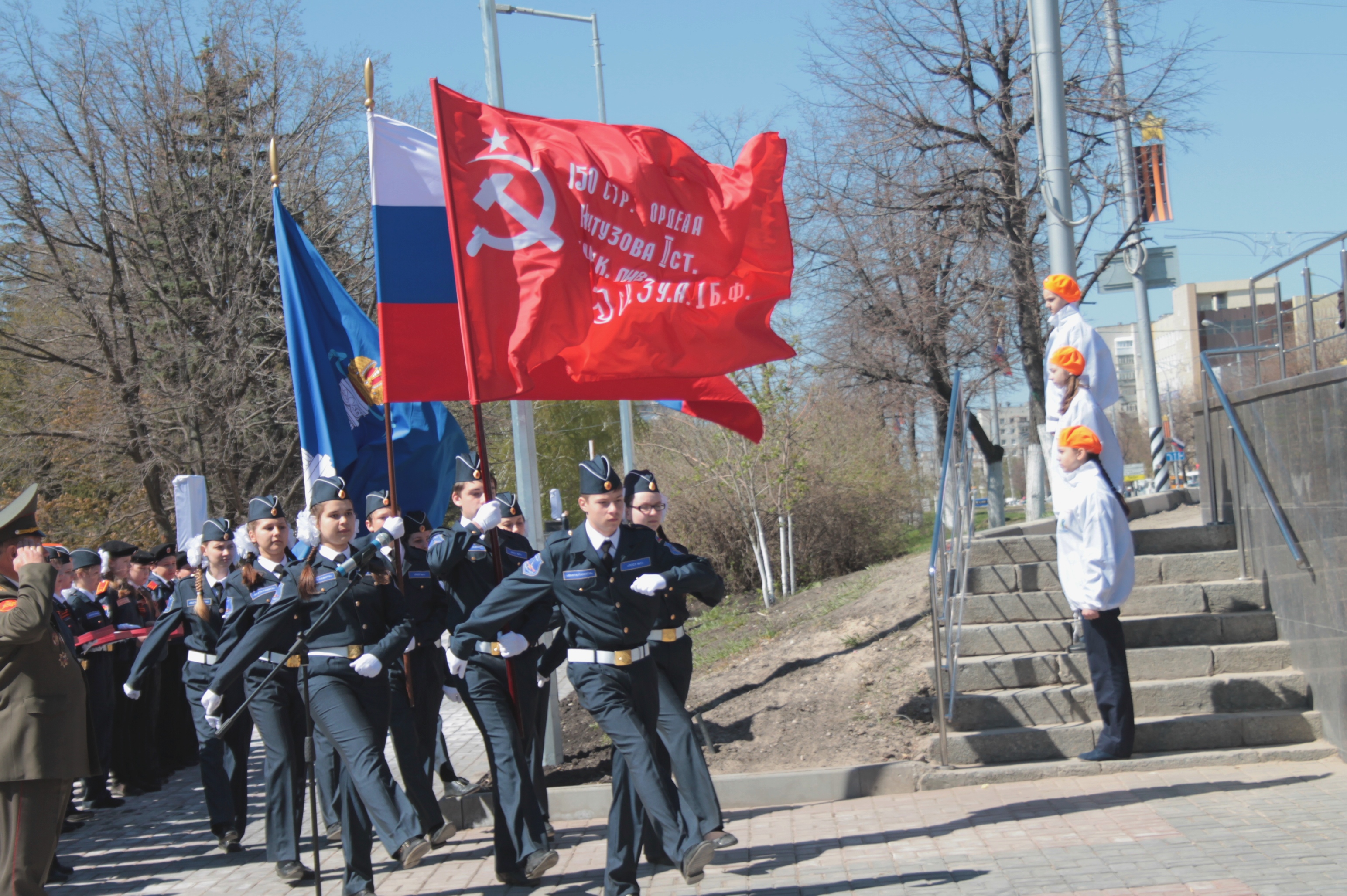 Церемония открытия прошла два действа. Первым из них стало вручение копий Знамени Победы школам региона носящим имена Героев Советского Союза и России. Таковых со всей области набралось 35.