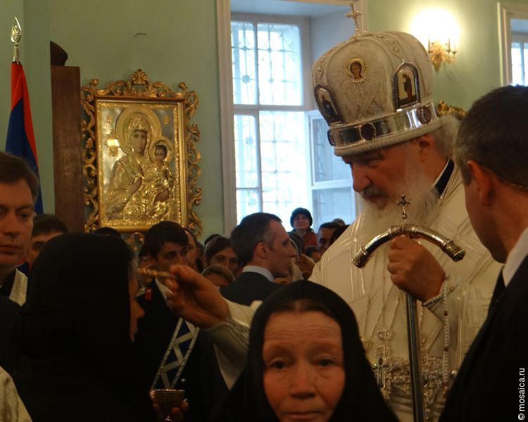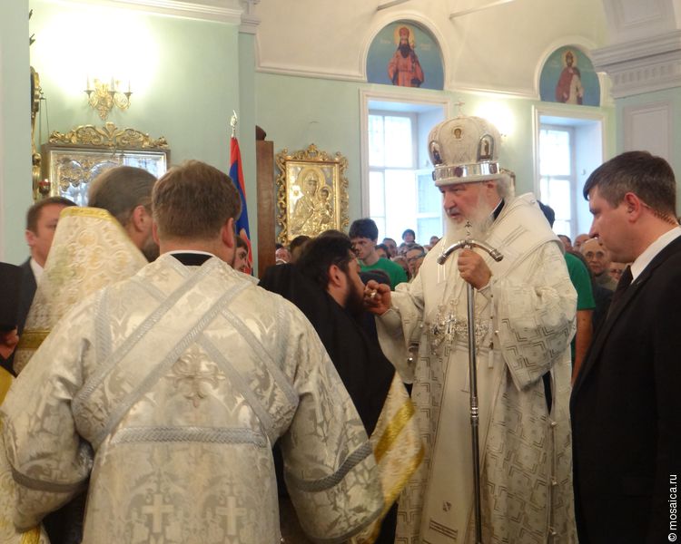 В дар собору Святейший Владыка передал список Смоленской иконы Божией Матери «Одигитрия». Верующим были розданы иконки Вознесения Христова с Патриаршим благословением.