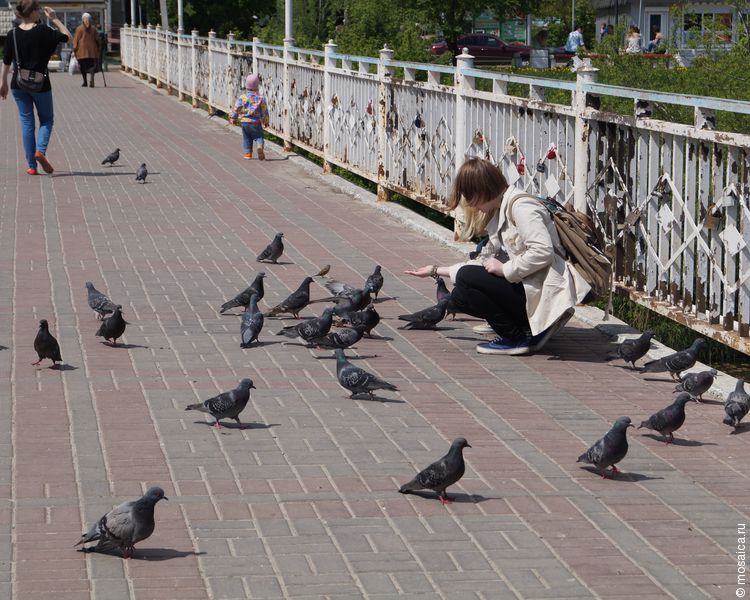 На самом мостике оживленно — много молодых мамочек с детьми и учащихся колледжа, который находится поблизости. Вот только деткам с родителями и присесть толком не где — лишь в самом начале моста установлена одна лавочка, которая редко пустует.