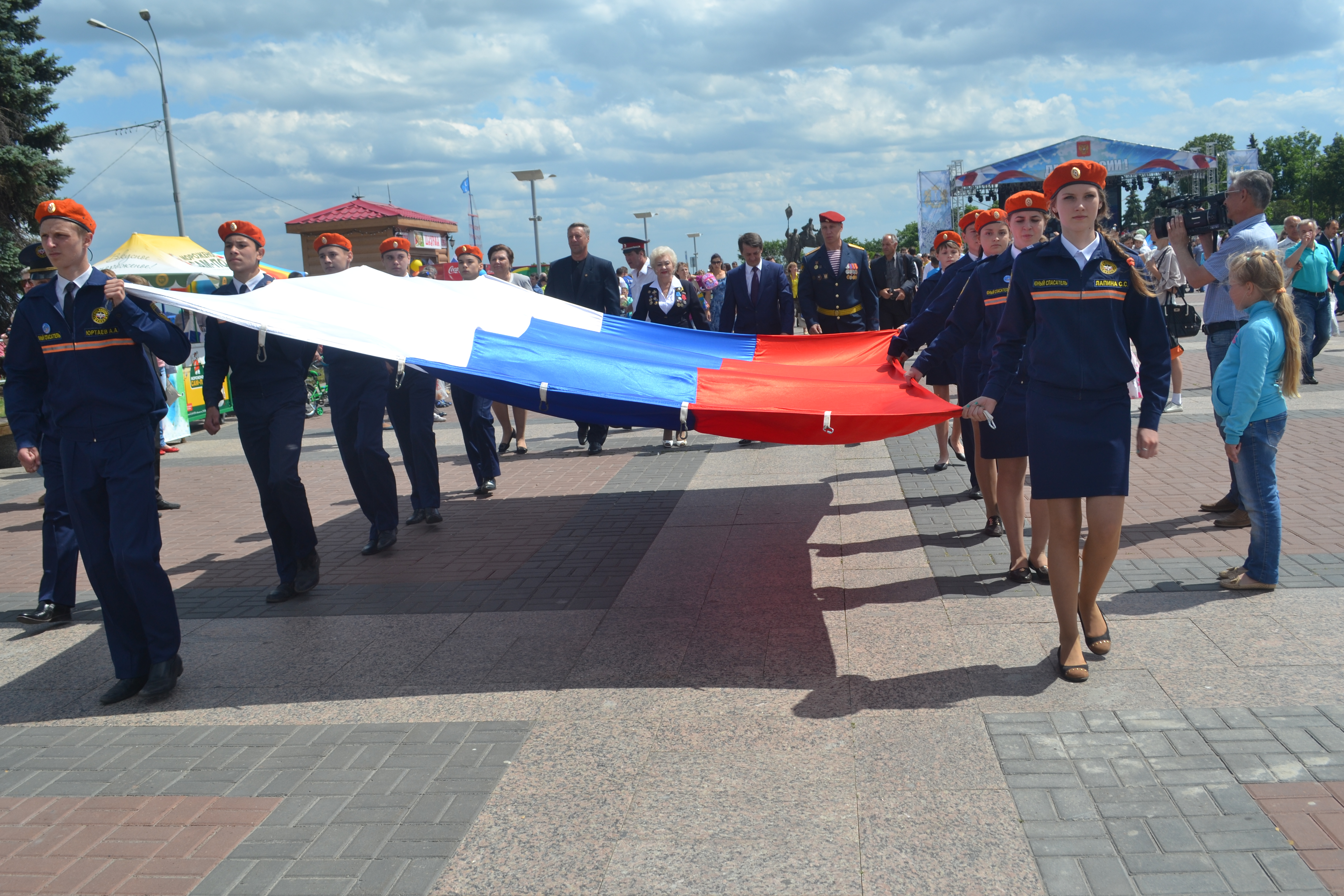 На главной городской площади прошёл исторический концерт, подняли флаг, а школьники дали клятву.