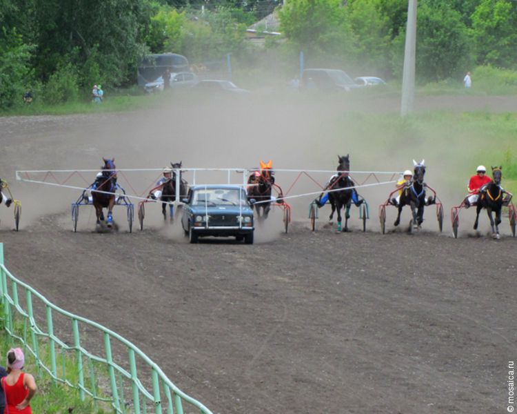 За приз академика А.Г. Курчакова для лошадей старшего возраста развернулась нешуточная борьба. Старт участники соревнований приняли при помощи стартовой машины.