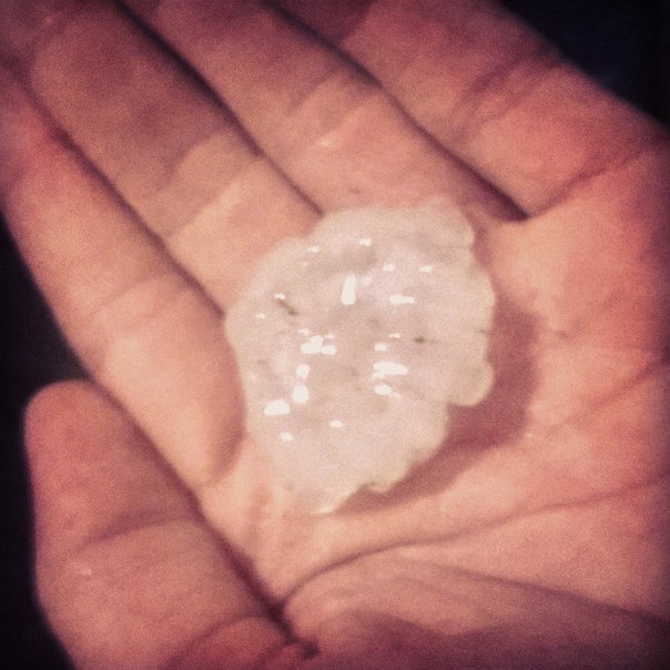 Сами же димитровградцы настроены довольно оптимистично: выкладывают фотографии с градом, который еле умещается в ладони.