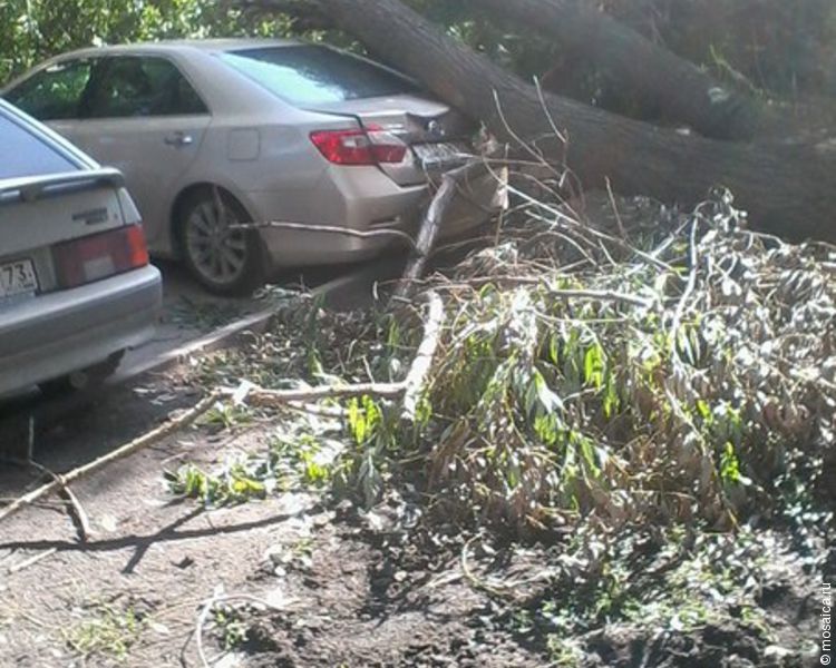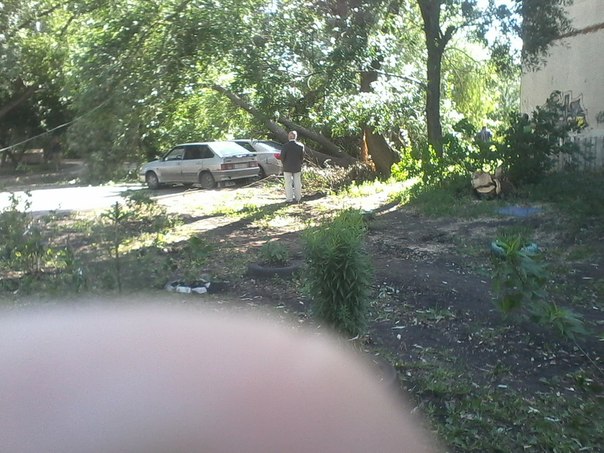 Пока Димитровград било градом, Ульяновск буквально сдувало ветром. В итоге штормовой ветер повалил многолетнее дерево во Владимирском саду, а на Набережной Свияги - три столба и дерево, которое свалилось на иномарку и раздавило ее.