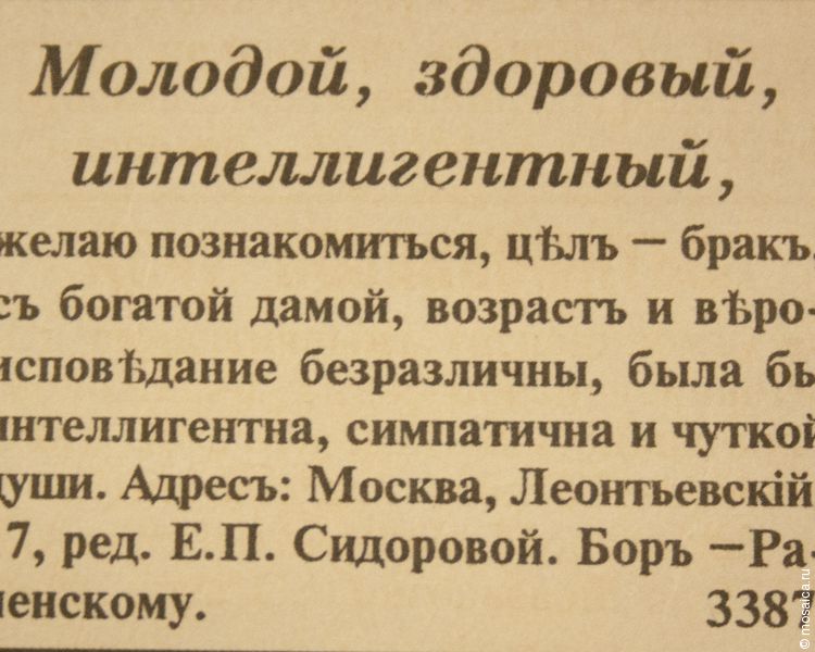 Встречаются и весьма оригинальные объявления, по крайней мере, в наше время настолько неравный брак не афишируется так открыто.