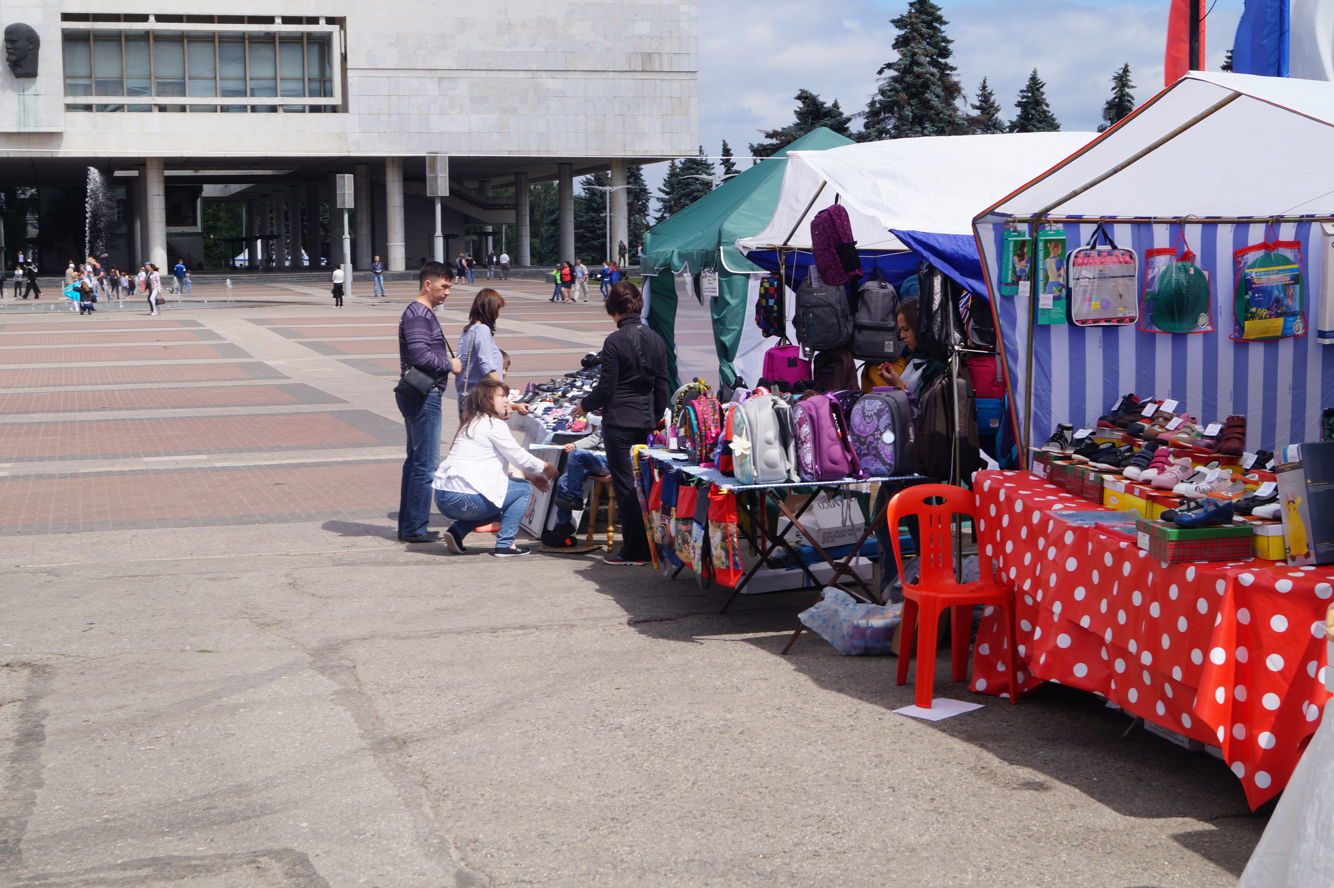 Было заявлено, что ярмарка начнется в 10.00 и продлится до 14.00. Приехав в 12.00 на площадь 100-летия Ленина, мы долго не могли найти эту ярмарку — уж больно незаметная она оказалась.