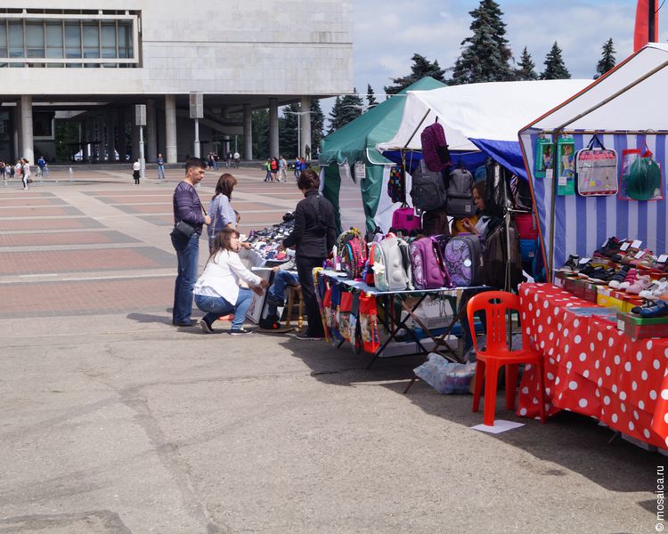 В расставленных палатках можно было купить школьную обувь, ранцы, форму, блузки, костюмы и даже книги.