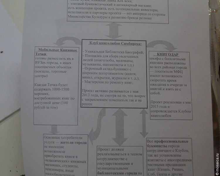 Но есть и реальные результаты работы клуба. К примеру, в ульяновских МФЦ появились книжные полки, так называемый «Книгодар». Все желающие могут взять книгу почитать, пока движется очередь, или забрать ее с собой. Можно принести свою и поставить ее на полку — пусть и другие почитают. Кроме того, букинисты пытались представить горожанам мобильные книжные точки, то есть в общественных местах, где много людей, ставят шкафы, в которых уместится примерно 500-1000 книг. И пригласить дедушку или бабушку из живущих поблизости. При таком варианте и книги бы продавались, и бабушки с дедушками дополнительную копеечку к пенсии получали.