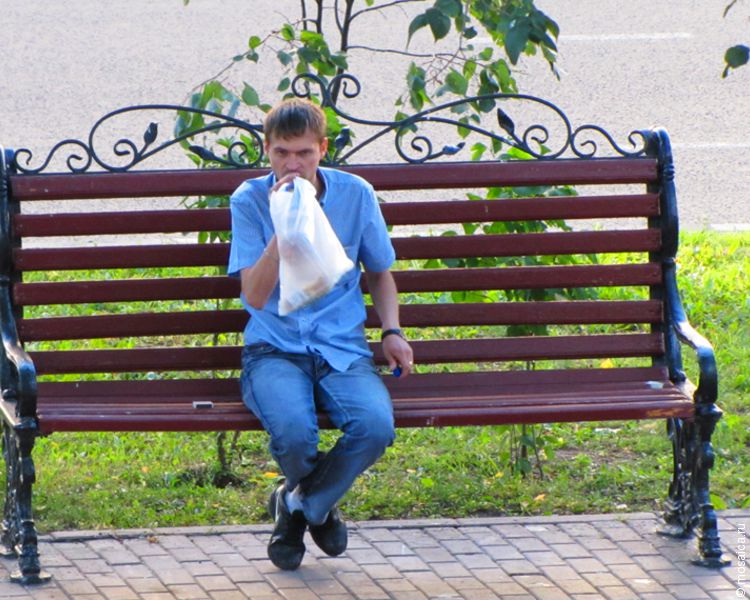 Это с точки зрения закона. Что же происходит на практике? На практике ульяновцы как распивали, так и продолжают распивать спиртное средь бела дня. Одни – действительно, из пакета, стыдливо оглядываясь по сторонам.