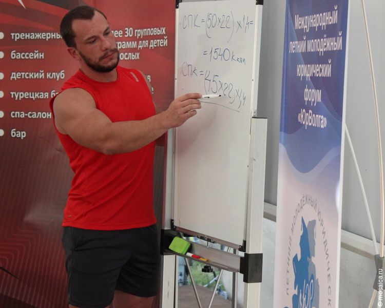 Фитнес-инструктор Антон Шкурников поведал собравшимся не только о правильном выборе полезных продуктов, но и необходимости соблюдения основ здорового питания. Заключаются они в следующем: принимать пищу нужно понемногу в течение всего дня с определёнными интервалами – 5-6 раз. Именно такой подход к питанию и является самым оптимальным. А напоследок в конце лекции каждый будущий юрист получил возможность задать дополнительные вопросы.