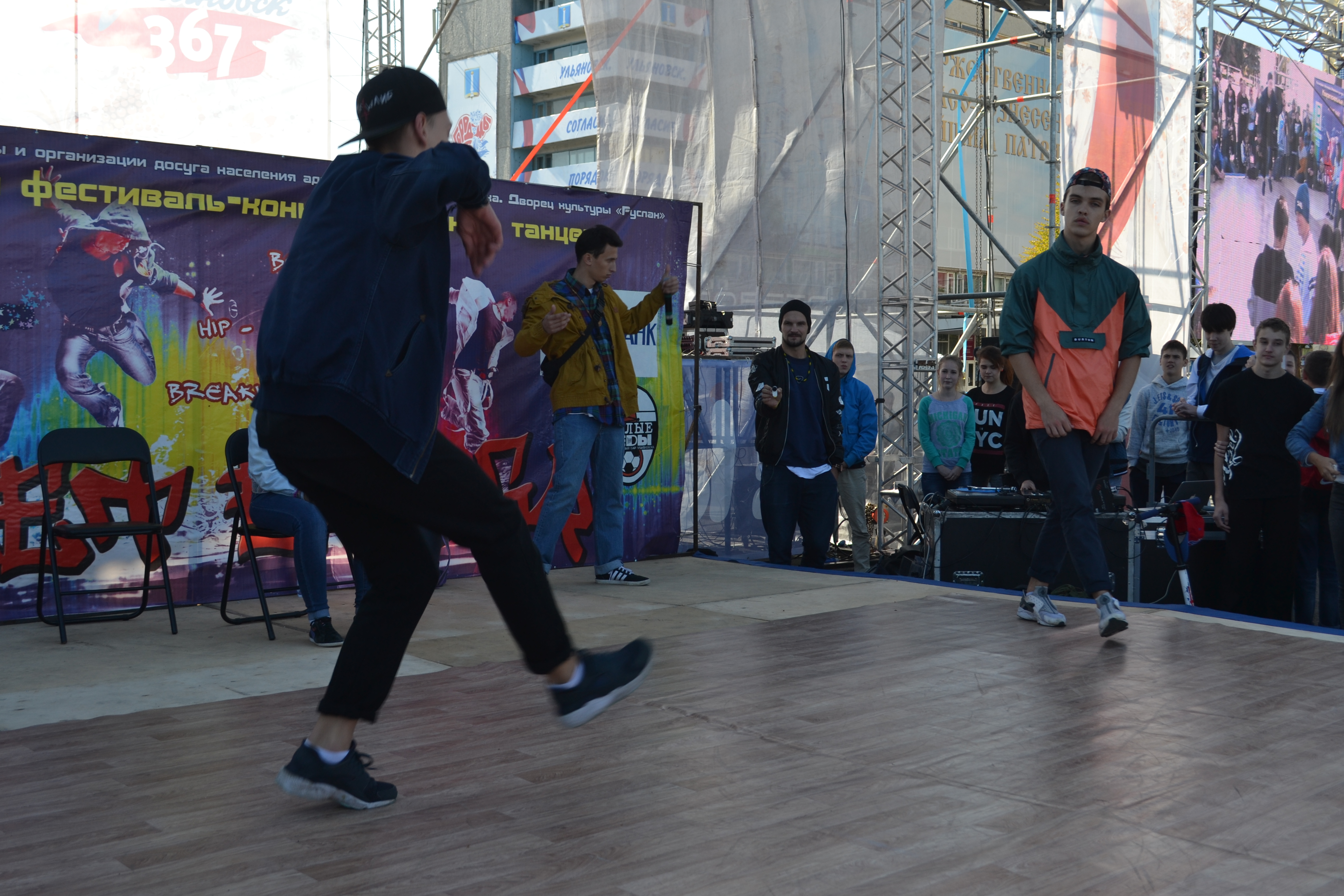 Главным местом утреннего действа 13 сентября стала площадь 100-летия со дня рождения Ленина. Правда, открытие праздника началось с получасовой задержкой. Хотя раньше подобное организаторы себе такого не позволяли. Первыми на площадь вышли несколько десятков детей, станцевавших под музыку ульяновского репера Ramonа. Их выступление получилось ярким и зажигательным.